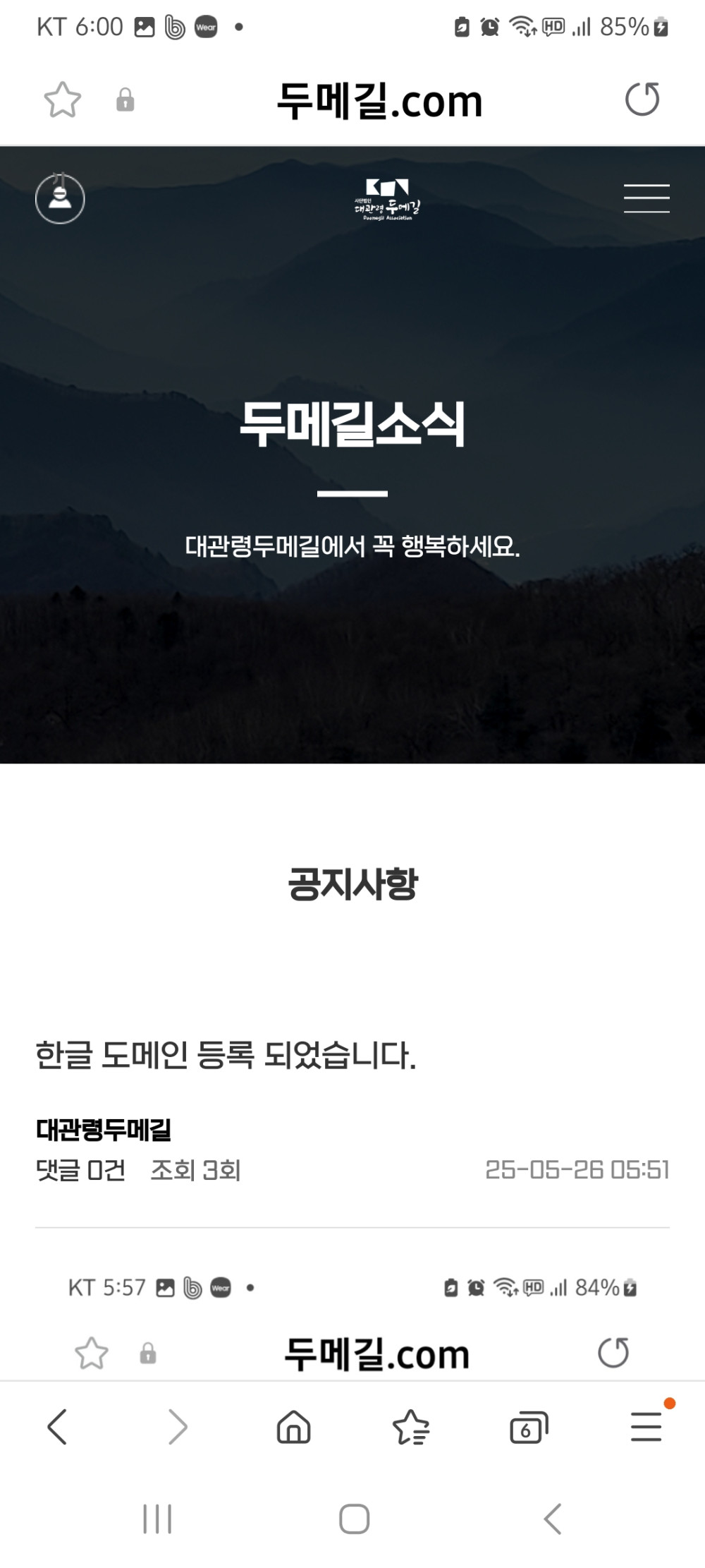 두메길 홈페이지 주소로 한글 도메인을 등록하였습니다.